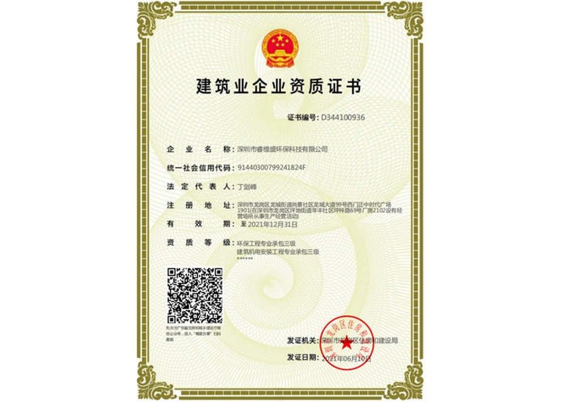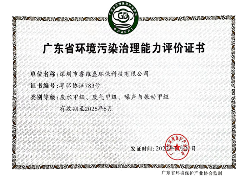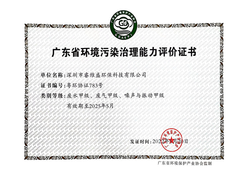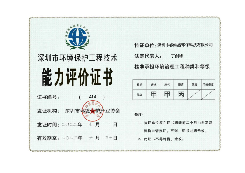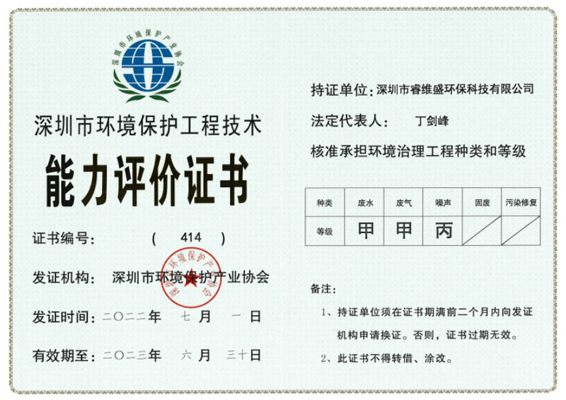 • 环境污染治理能力评价证书