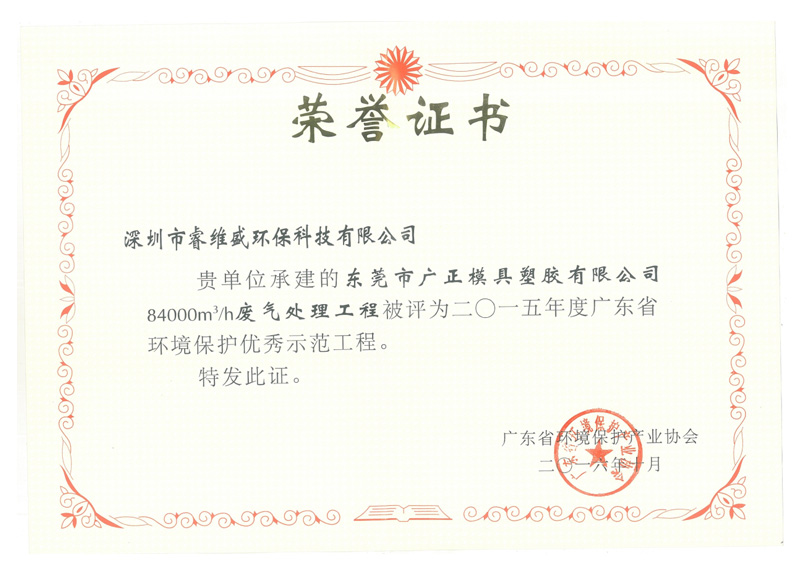 我方负责设计施工的84000m3/h的喷涂有机废气处理系统被评为“广东省环境保护优秀示范工程”