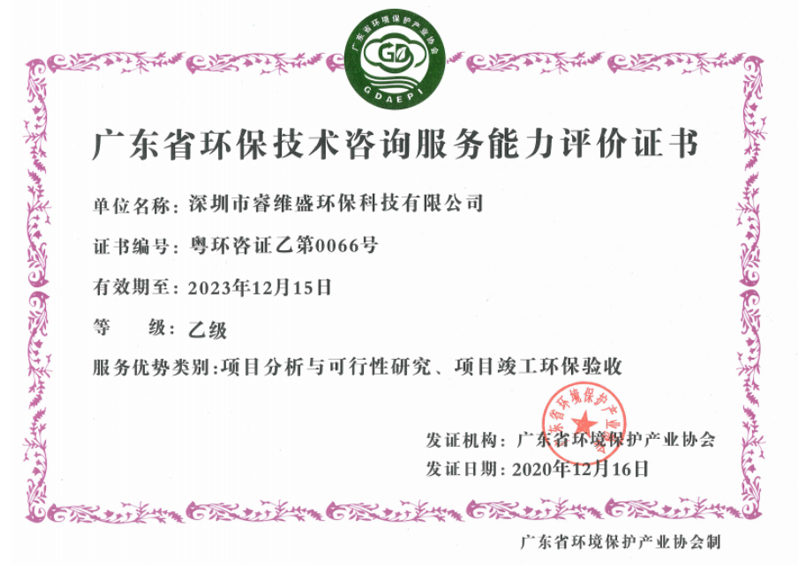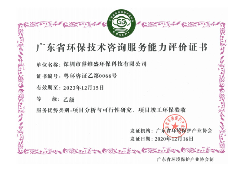 • 环保技术咨询服务能力评价证书
