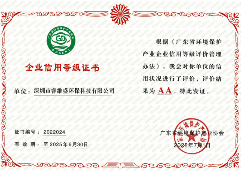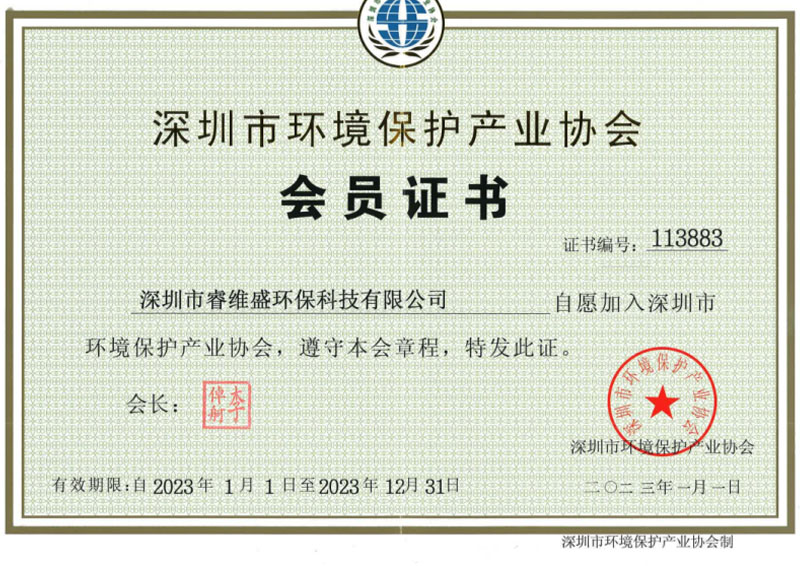 • 环境保护产业协会会员证书