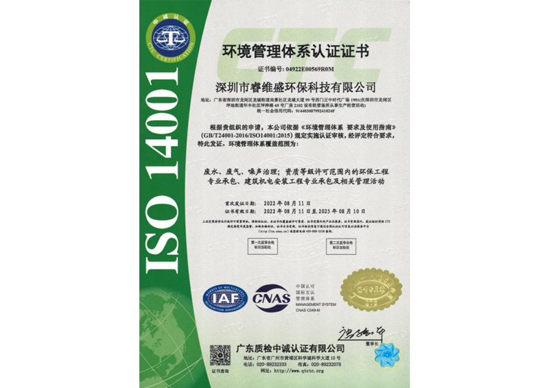 • 环境管理体系认证